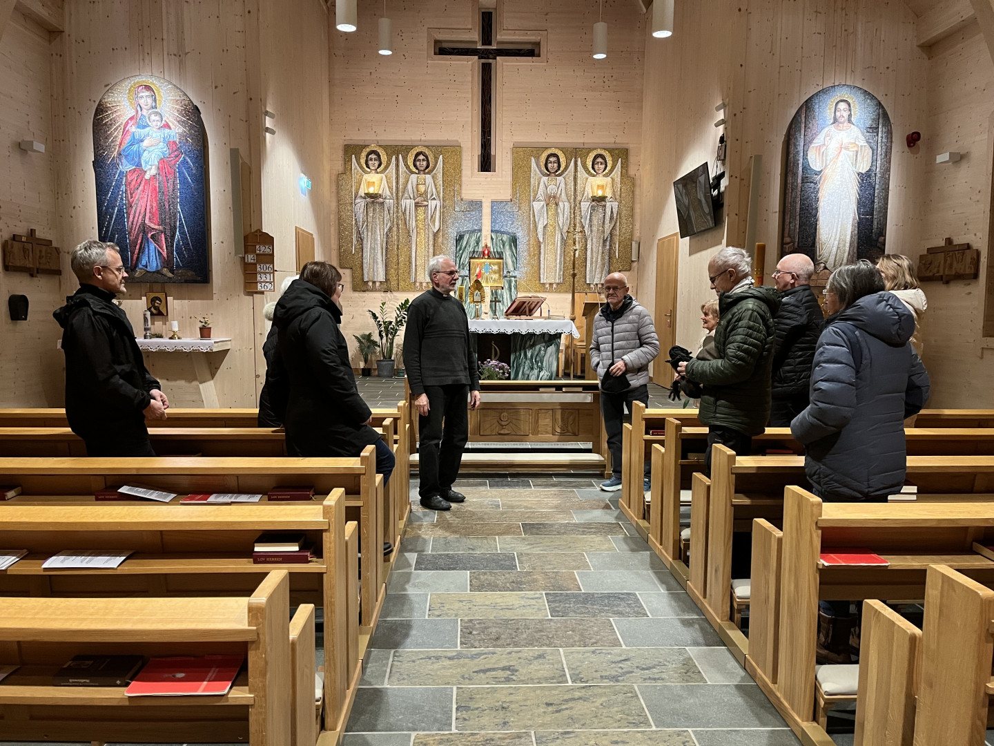 25.november fikk medlemmer og andre innbudte omvisning ved en katolske kirken i Alta. Vi fikk en grundig omvisning og forklaring om bygget, om byggeprosessen og litt om katolisismen. Nydelig bygg og effektfulle glassmalerier. Stor takk til Wojciech Egiert som tok imot oss!